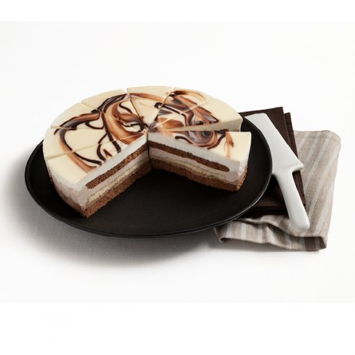 Wasser, Zucker, rehydrierte MAGERMILCH, pflanzliches Fett (Kokos, Palme), weisse Glasur [Zucker, Wasser, pflanzliches Öl (Raps), Stärke, Emulgatoren: Zuckerester von Speisefettsäuren, Geliermittel: Agar-Agar und Pektin, Säuerungsmittel: Zitronensäure, Verdickungsmittel: Carboxylmethylcellulose und Xanthan, Konservierungsstoff: Kaliumsorbat, natürliches Vanillearoma], WEIZENMEHL, EIER, Glukosesirup, Glukose-Fruktose-Sirup, MILCHSCHOKOLADE (1,2%) [Zucker, Kakaobutter, VOLLMILCHPULVER, Kakaomasse, Emulgatoren: Lecithin (SOJA), Aroma], Schokolade (1,2%) (Kakaomasse, Zucker), Alkohol, Speisegelatine, fettarmes Kakaopulver (0,7%), modifizierte Stärke, EIGELB, Maltodextrine, LAKTOSE, Emulgatoren: Mono und Diglyceride von Speisefettsäuren, Mono- und Diacetylweinsäureester von Mono- und Diglyceriden von Speisefettsäuren und Lecithin (SOJA), Feuchthaltemittel: Glycerin, Kakao, pflanzliches Öl(Sonnenblume), MILCHEIWEISS, weisse Schokolade (0,08%) [Zucker, Kakaobutter, VOLLMILCHPULVER, Emulgatoren: Lecithin (SOJA), natürliches Vanillearoma], Aromen (enthält MILCH), Salz, Backtriebmittel: Natriumhydrogencarbonat und Dinatriumdiphosphat , Verdickungsmittel: Xanthan und Carrageen, Stabilisator: Kaliumchlorid.