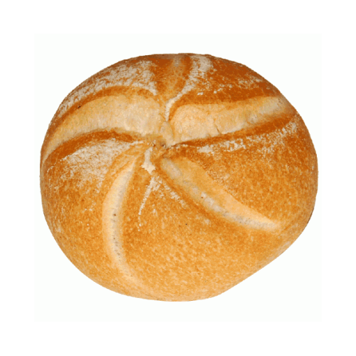 Typische, große Kaisersemmel mit stark hochgezogenem Ausbund, gestanzt, glänzende Oberfläche, goldgelb gebacken.