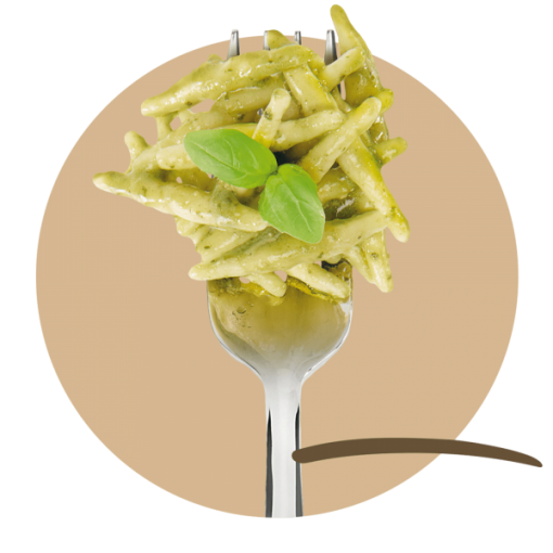 Vorgekochte Weizenmehl Pasta 55% (Weizenmehl-Pasta 73% (WEIZENMEHL, Wasser, Salz), Wasser), Wasser, Basilikum in Öl 8% (Basilikum 90%, Sonnenblumenöl, Salz), Pecorino Romano DOP Käse (SCHAFSMILCH, Salz, Lab), Extra Vergine Olivenöl, Sonnenblumenöl, pinienkerne, WALNÜSSE, CASHEW-NÜSSE, Grana Padano DOP Käse (MILCH, Salz, Lab, EI-Lysozym), Petersilie, Knoblauch.